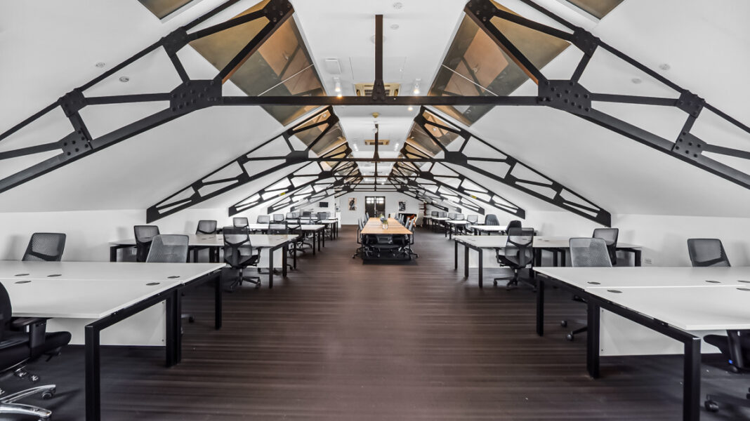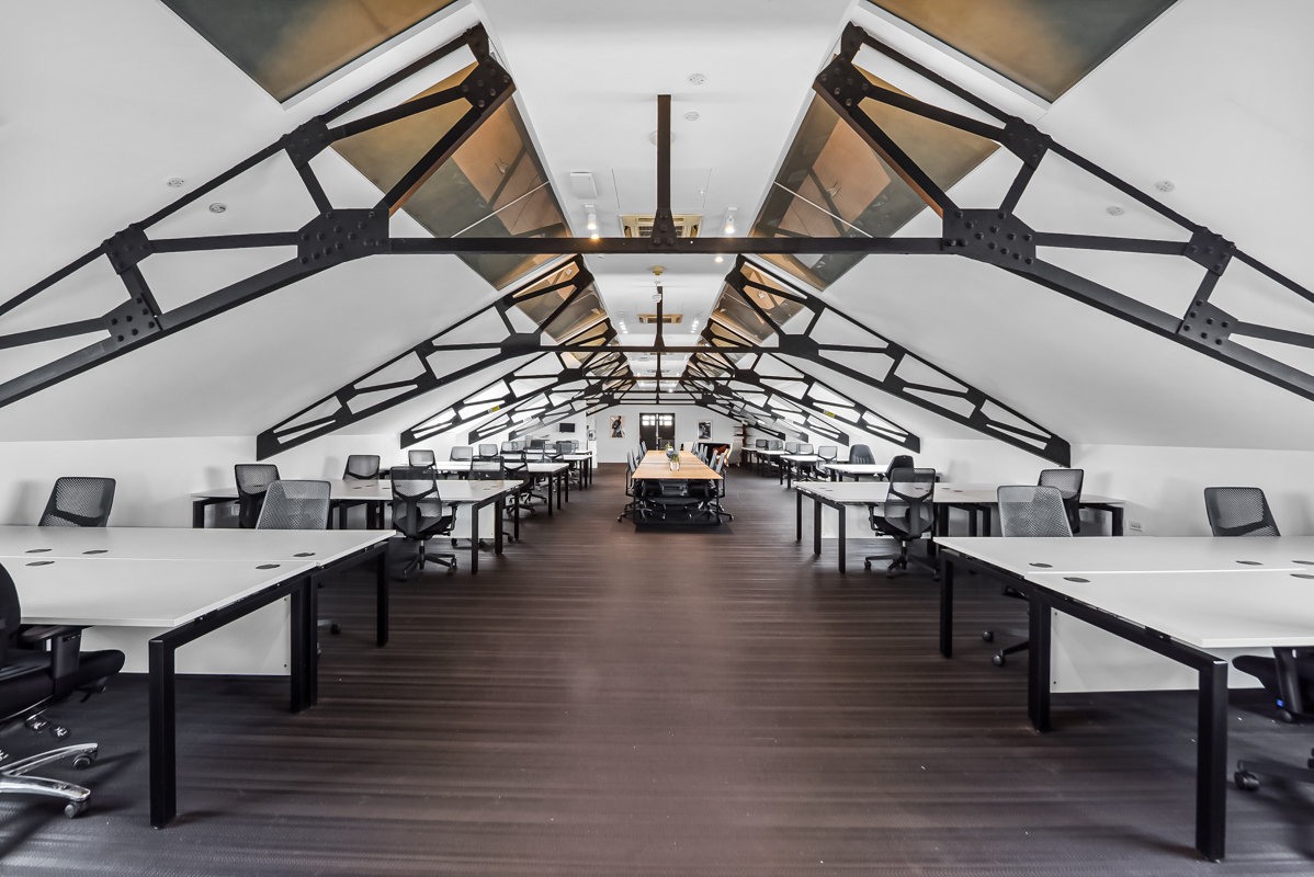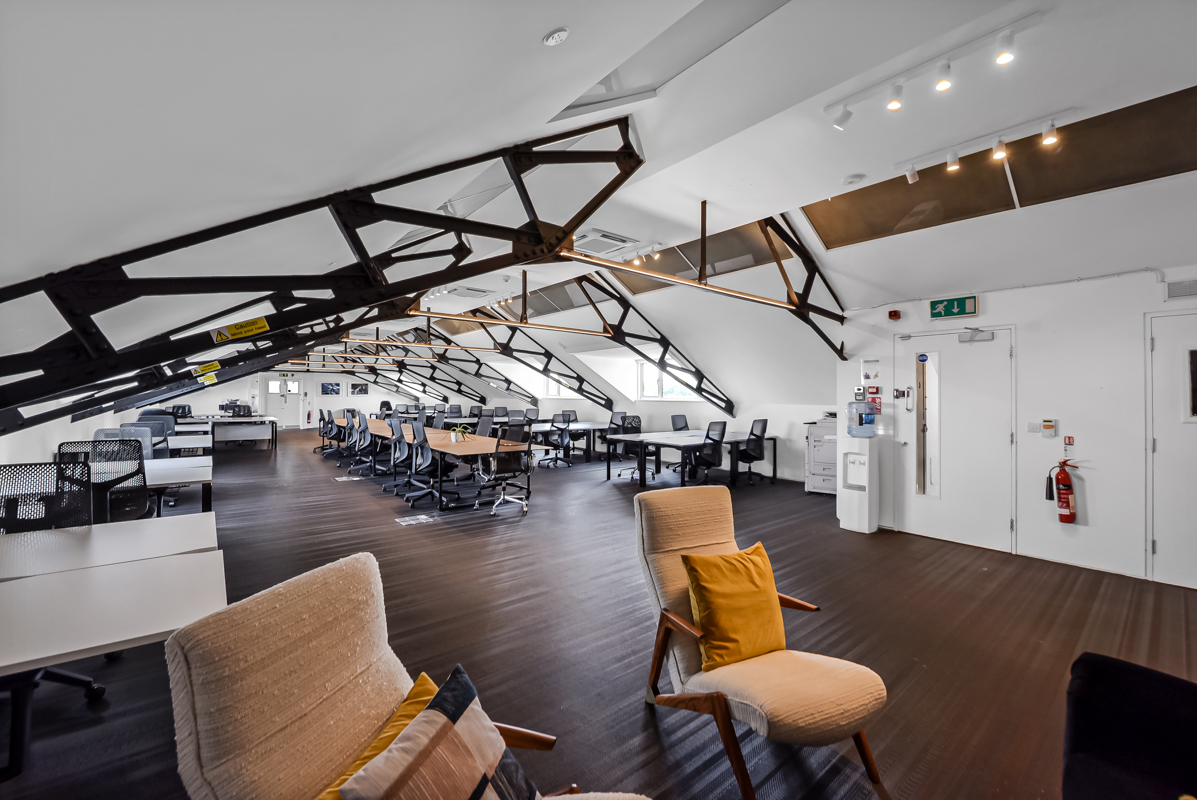 natural light, hoist mechanisms, and access to the River Fleet for steam power—all now sensitively restored within the creative workspace of Spring House.