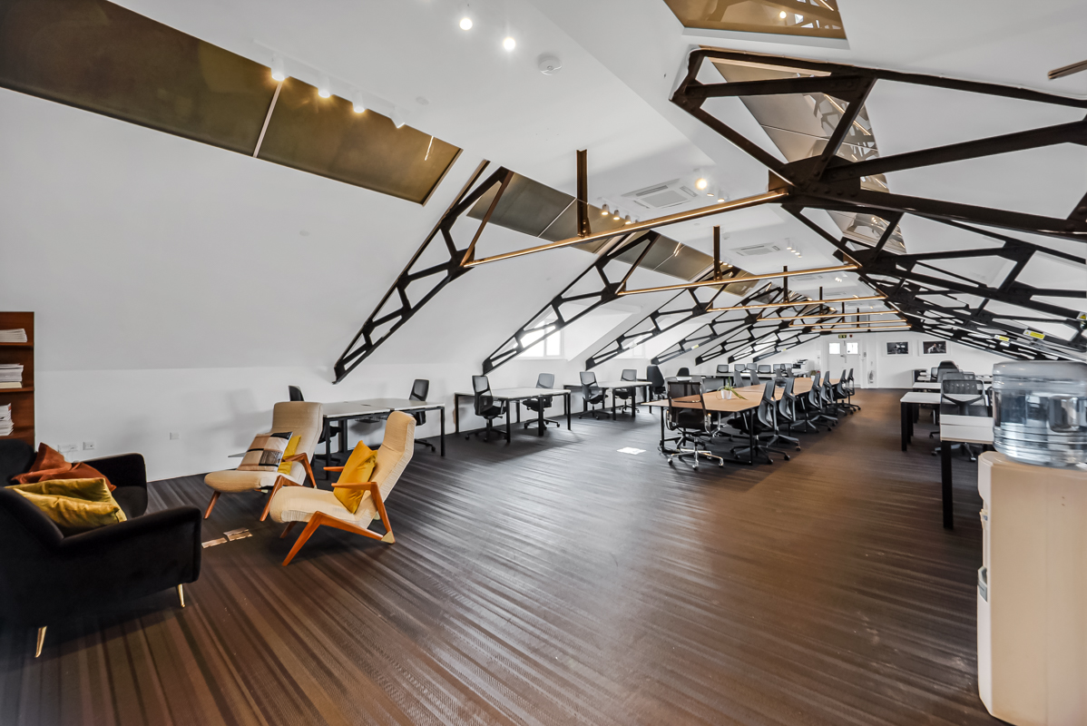 The space available is the impressive former editing suite and creative hub of an internationally renowned studio. The expansive 5,200 sq ft workspace (c. 2,600 sqft per floor) offers high ceilings, excellent natural light, and a clean, contemporary fit-out designed for modern teams. The space includes open-plan work areas, meeting rooms, two editing suites, a storeroom, a cinema room, kitchenettes, private WCs, and is fully furnished with ergonomic desks, soft seating, and highspec presentation equipment. Occupiers benefit from FTTP fibre internet, utilities, cleaning, and premium office provisions as part of a fully managed, plug and- play service. Spring House combines character, convenience, and connectivity in a vibrant North London neighbourhood.