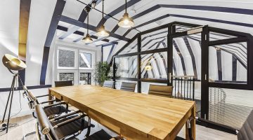 Built in 1869, No. 70-71 Wells Street originally started life as a school for the local church, before turning into a haberdashery (1925), a photography studio (1970), and now an office building (2018). The three-storey, Tudor-style architecture is a fantastic display of mid-Victorian craftsmanship. The building has benefitted from a recent refurbishment, which gives the airy internal atrium a touch of sophistication, whilst retaining enough original features to give occupants a tasteful reminder of its past. Previous recent occupants have included a PR firm, creative agency, film production company, recycling company and an embroidery school.