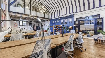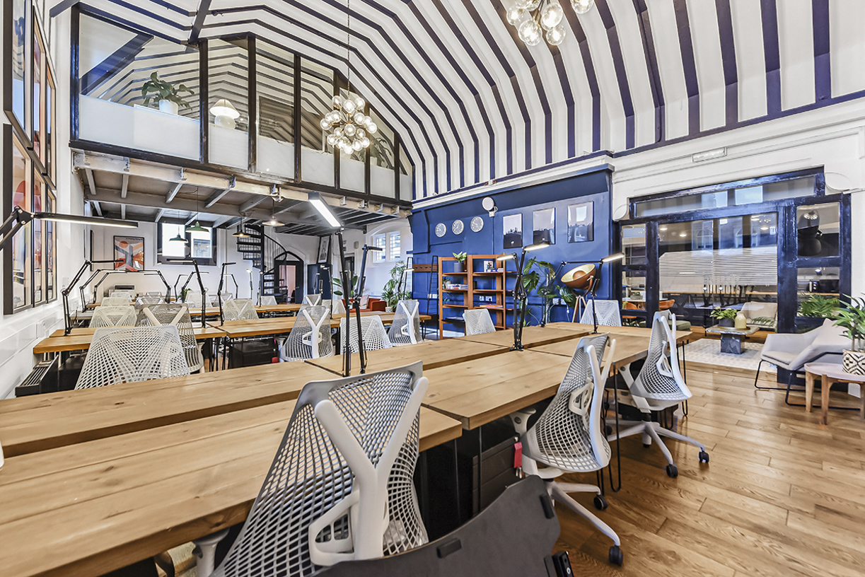 The space available is the impressive former hall of the original school, situated on the top floor and benefitting from excellent natural daylight, triple height vaulted ceilings, wonderful period features and various mod-cons including a dedicated 10GB fibre line and air-conditioning. The space is 1800 square feet (NIA) and consists of a main office area, private toilets, a private kitchen area, two large meeting rooms and one smaller meeting room. There is also a pleasant balcony looking into the internal atrium of the building.